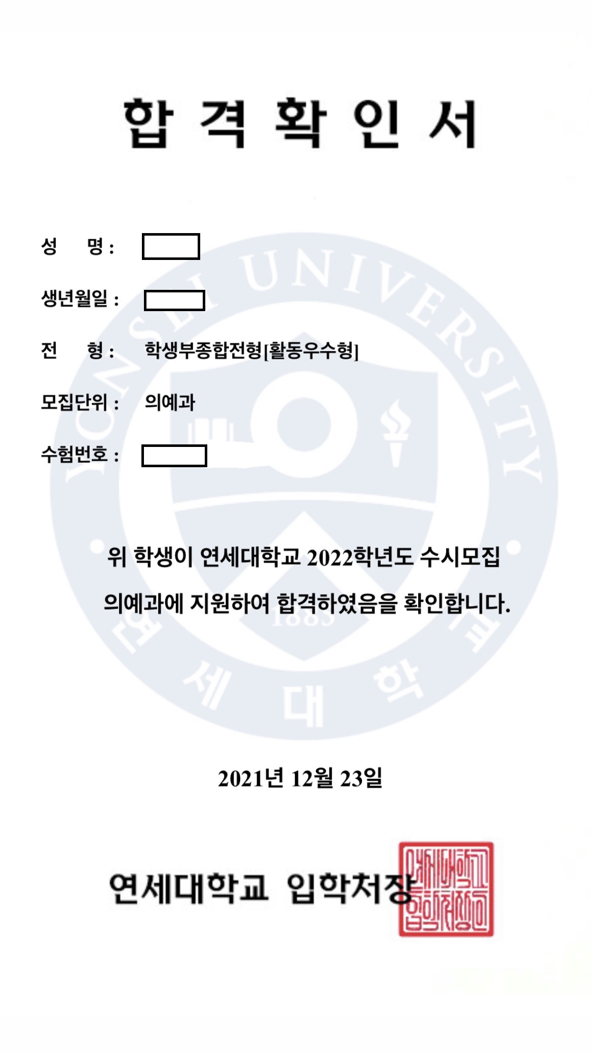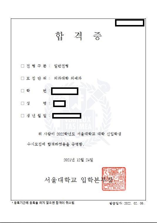 아래의 학생은 울산대 의대에 최종합격하였습니다.