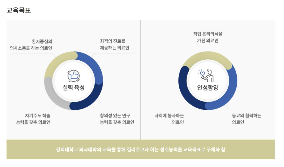 사실 어느 학교나 인재상은 최적의 진료, 소통능력, 자기주도적학습능력, 창의성있는 연구, 윤리의식, 봉사정신을 강조하고 있을 것입니다.