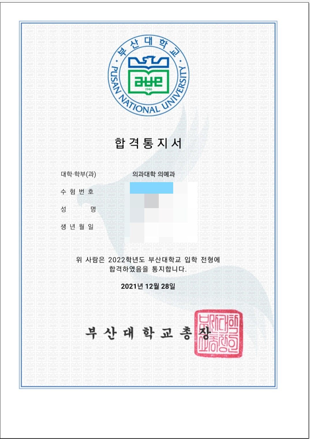 부산대학교 의예과에 지역인재교과 (학생부교과) 전형으로 합격한 것 이외에