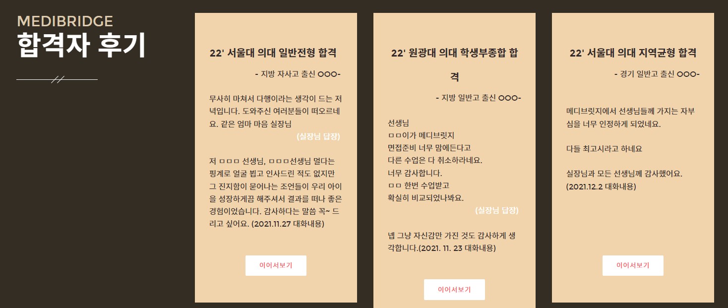 학생들이 본인의 꿈을 이루는 데 정말 도움 되는 교육을 하고 싶어서 만들어진 '메디브릿지'