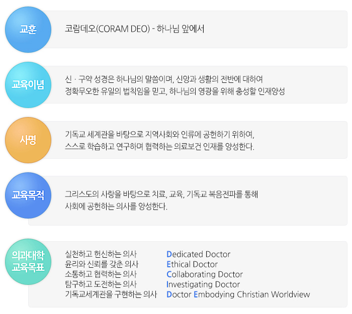 고신대학교 의과대학의 사명과 교육목적은 이러합니다.