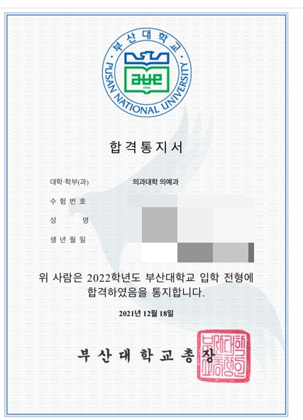 2022학년도 부산대학교 의예과에 합격했습니다.